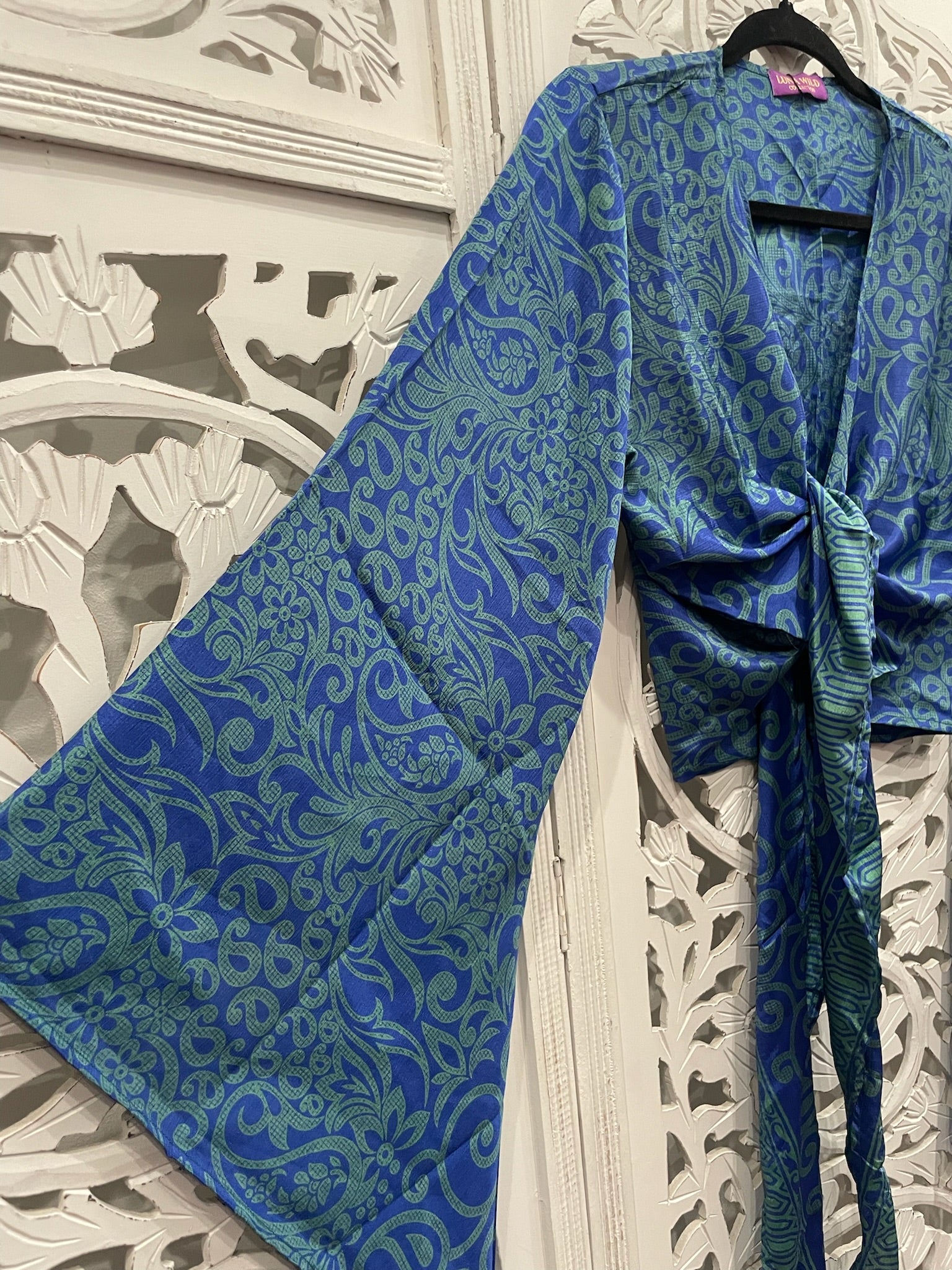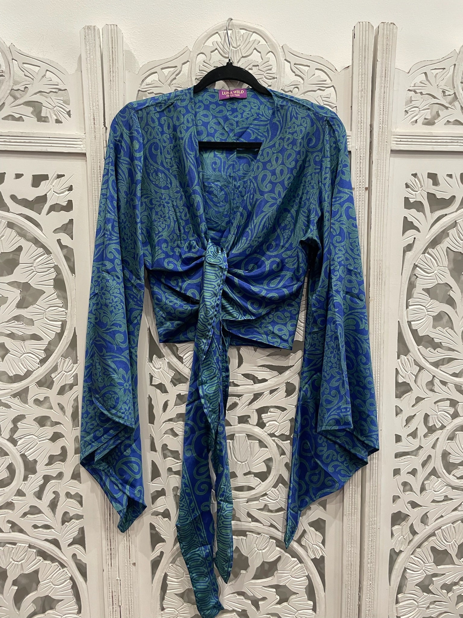 The Sari: Every unique vintage sari is hand selected by our founder in India. A sari is a quintessential garment and symbol of grace worn by women throughout India. Made from an unstitched length of fabric designed with symbolic colors and patterns, a sari is wrapped around the body in countless styles. In an age-old tradition of slow fashion, saris are traded and passed down to adorn generations of women. While the art of the sari has begun to dissipate in modern times, Luna Wild is dedicated to bringing their vibrance, history, and thoughtfulness to contemporary fashion. Our founder and dedicated tailors pick only the highest-quality saris to repurpose into our unique power pieces.