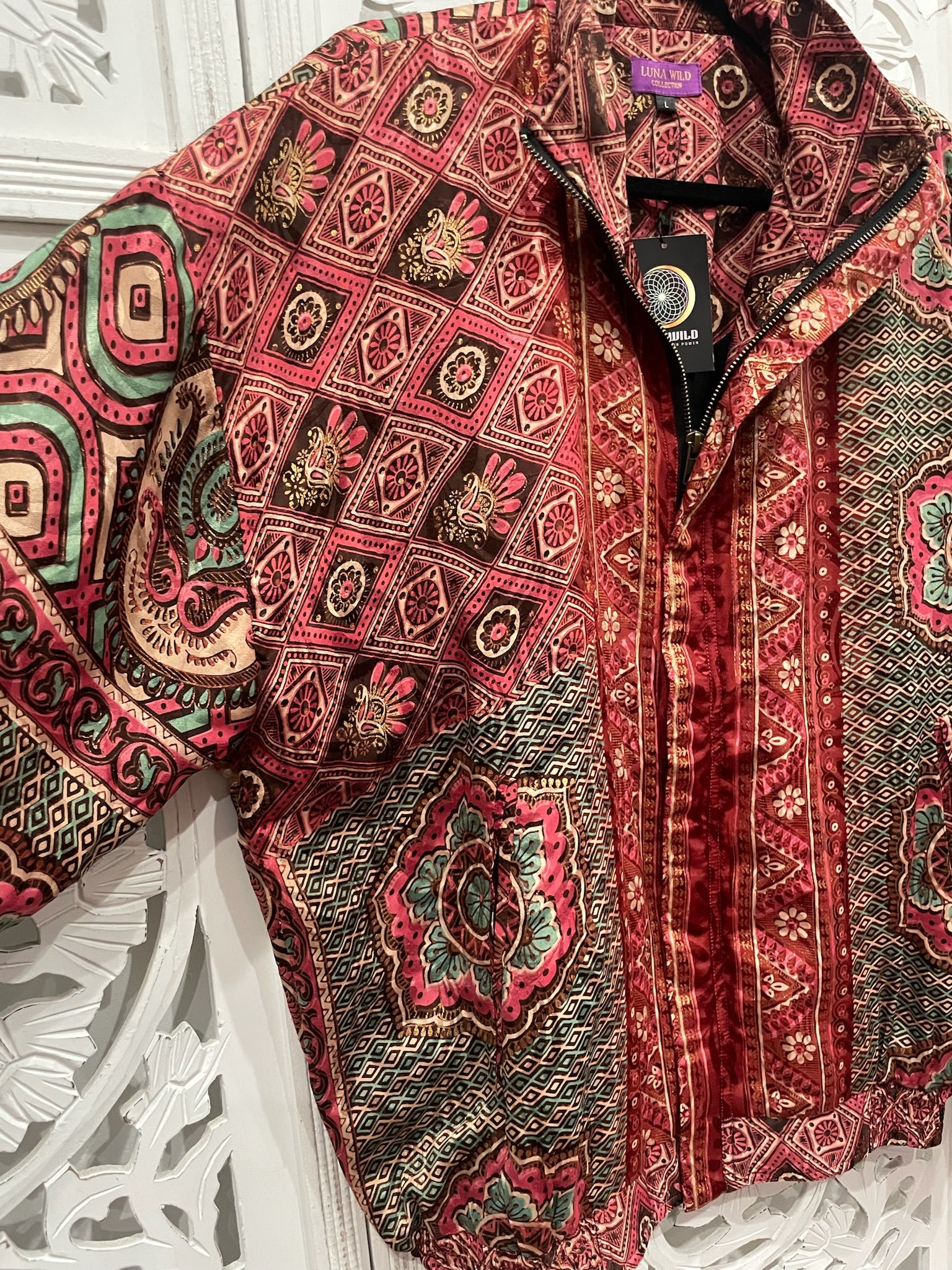 Upcycled Imperfections: Luna Wild upcycles previously loved vintage saris and kantha quilts that have lived many past lives and traveled many journeys throughout India. Each creation may have small imperfections such as small stains or holes. We make sure these details aren't obvious so every Luna Wild piece radiates its full beauty. We appreciate them and the history they carry, we hope you do too!