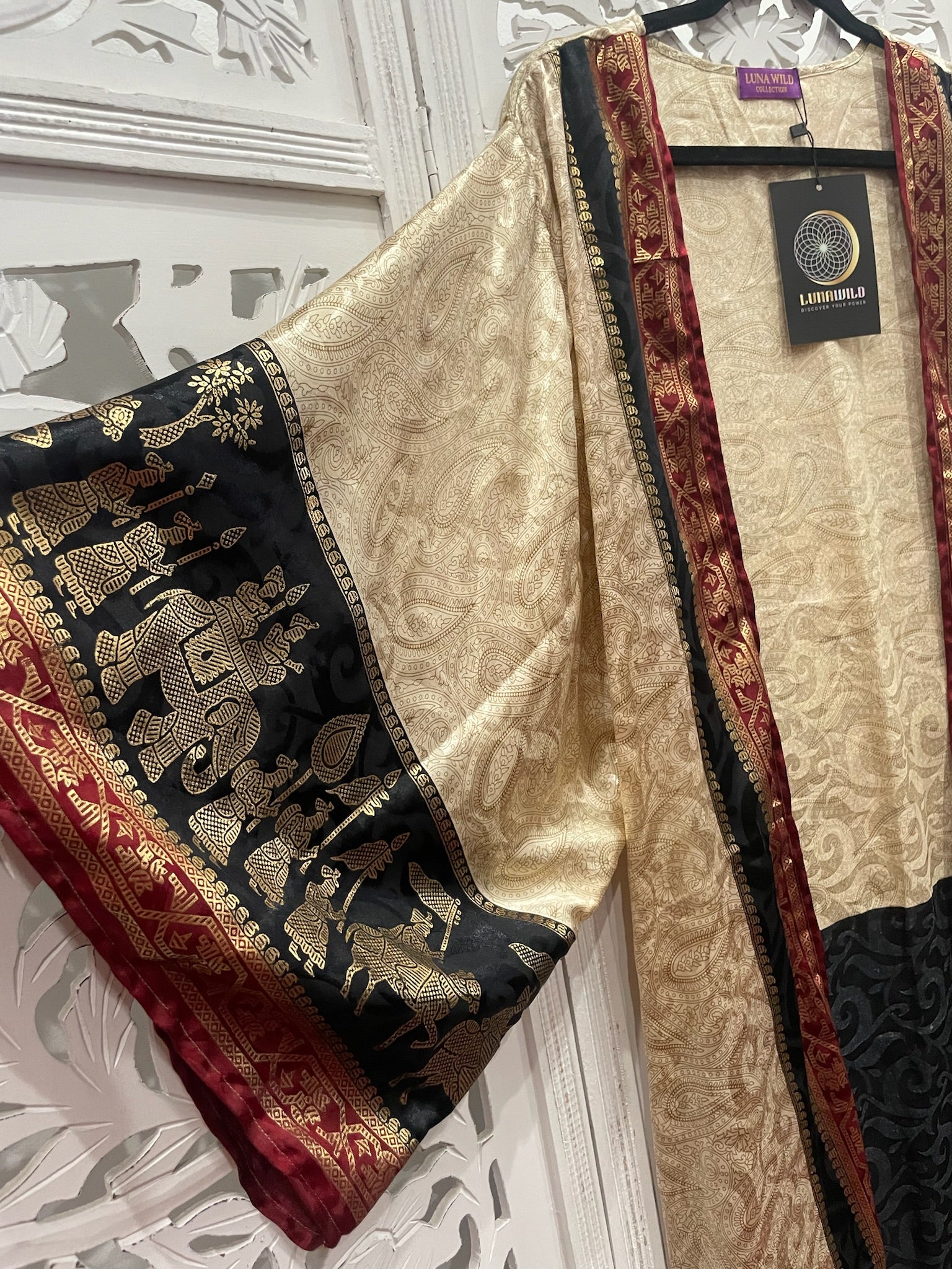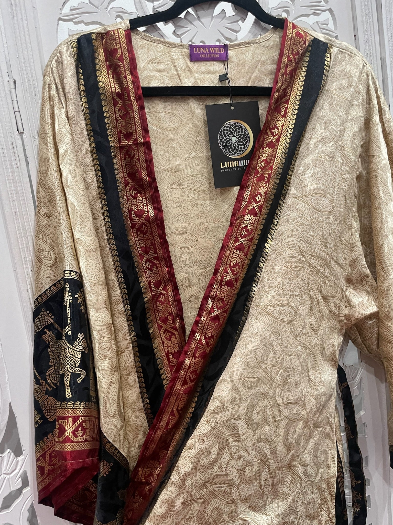 Flow into your true self. Luna Wild Dusters are one-of-a-kind and handmade with lightweight upcycled Indian saris. Adorn yourself with these weightless wonders poolside, barside, and bedside.