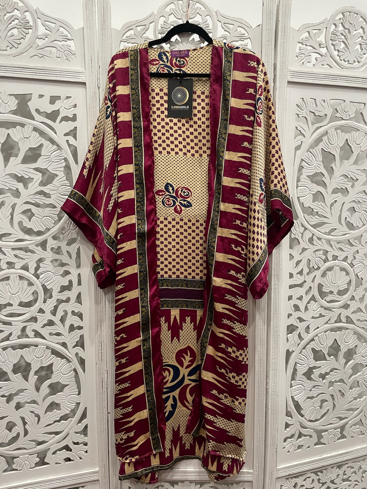 Upcycled Imperfections: Luna Wild upcycles previously loved vintage saris and kantha quilts that have lived many past lives and traveled many journeys throughout India. Each creation may have small imperfections such as small stains or holes. We make sure these details aren't obvious so every Luna Wild piece radiates its full beauty. We appreciate them and the history they carry, we hope you do too!