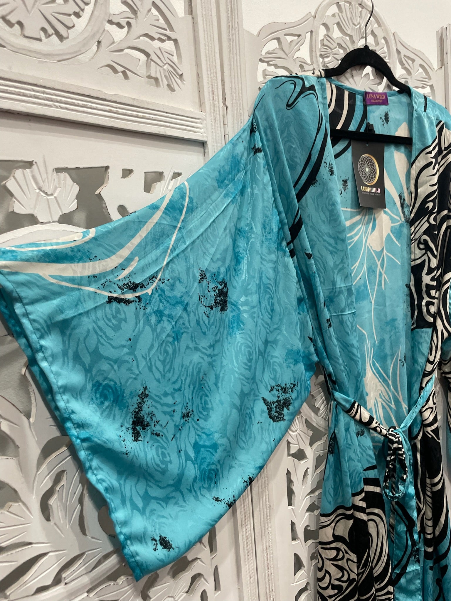 Flow into your true self. Luna Wild Dusters are one-of-a-kind and handmade with lightweight upcycled Indian saris. Adorn yourself with these weightless wonders poolside, barside, and bedside.