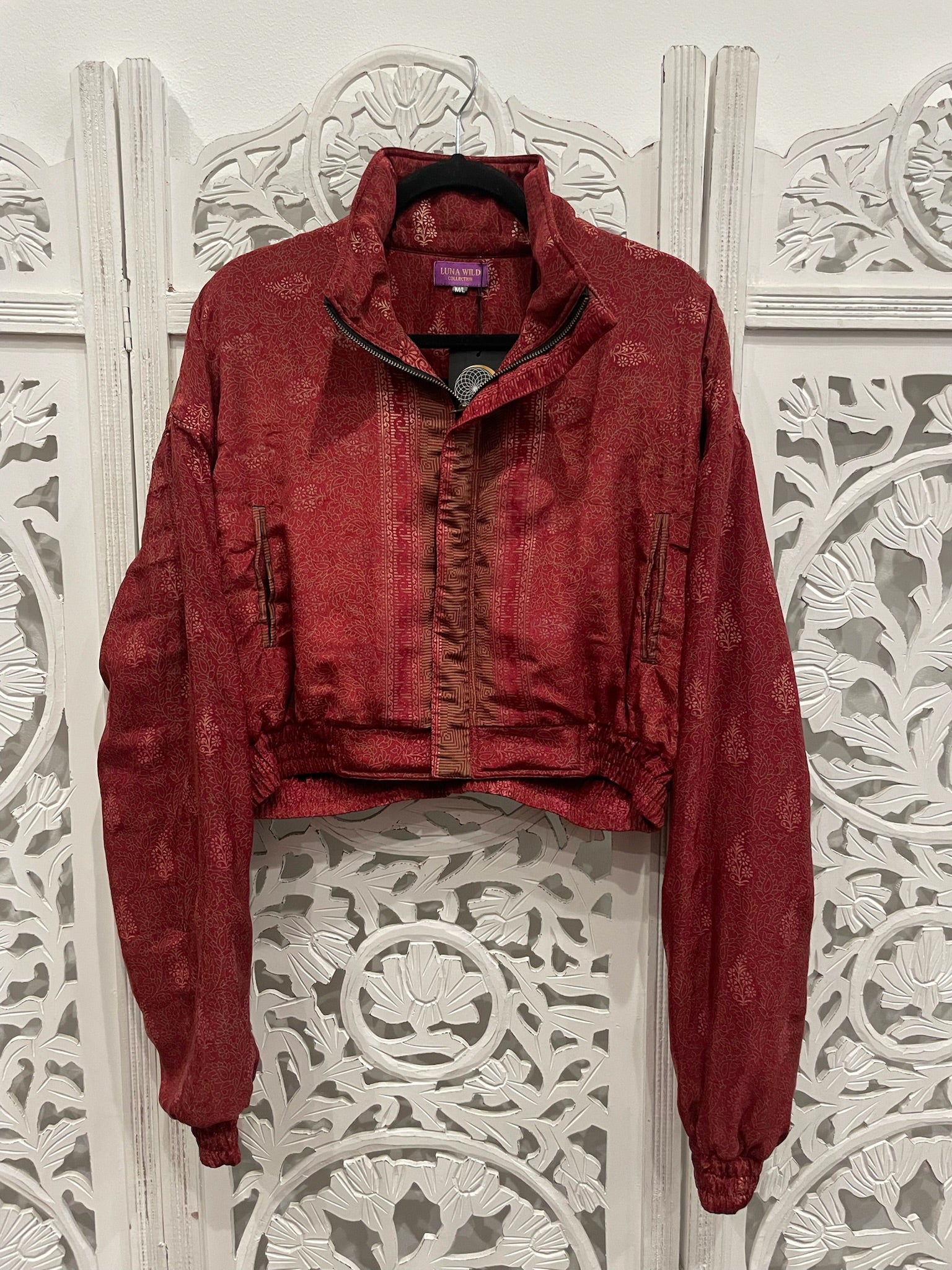 Prepare to turn heads and knock em dead. Luna Wild cropped bomber jackets are one-of-a-kind and sexy for any gender. A sustainable statement piece that represents your inner power.