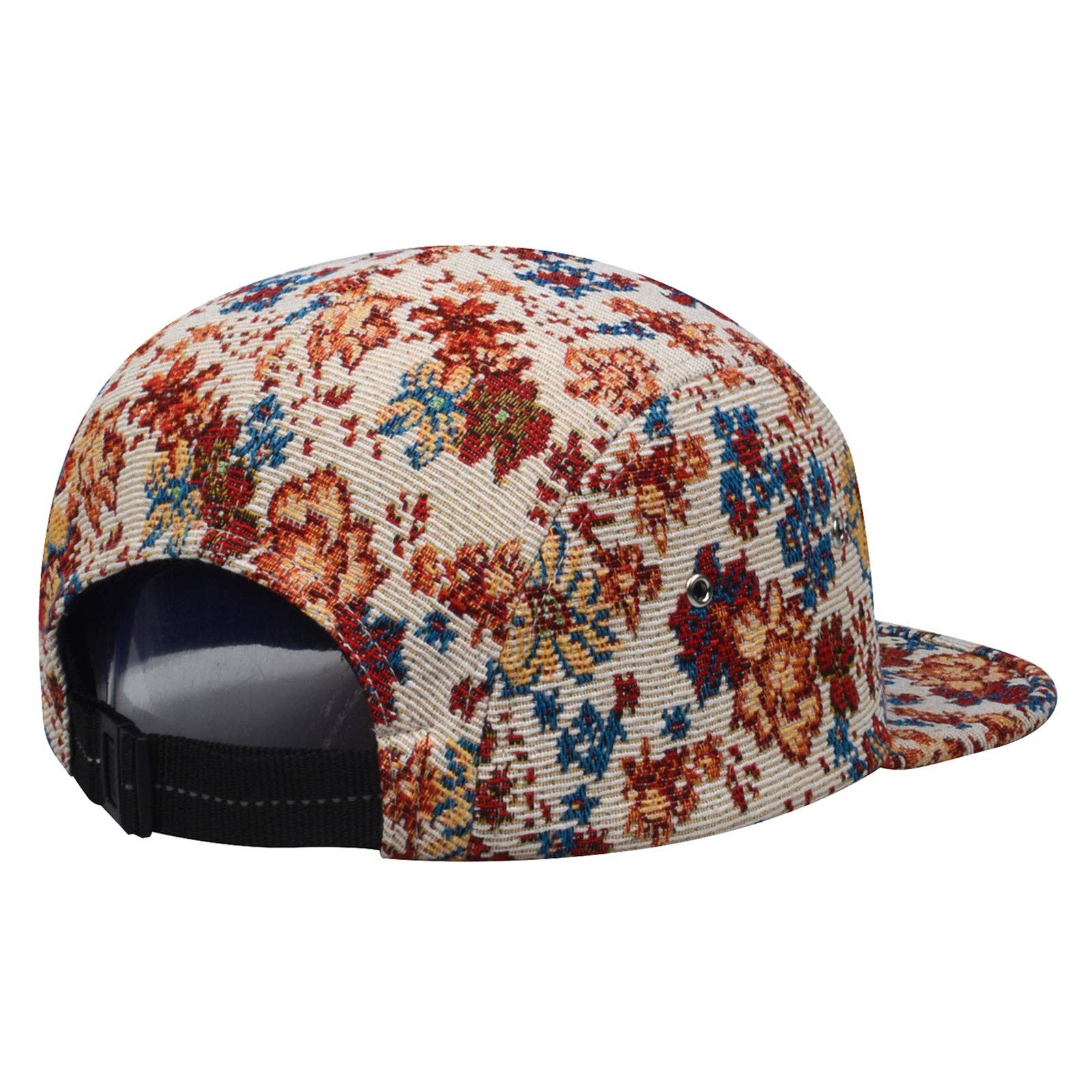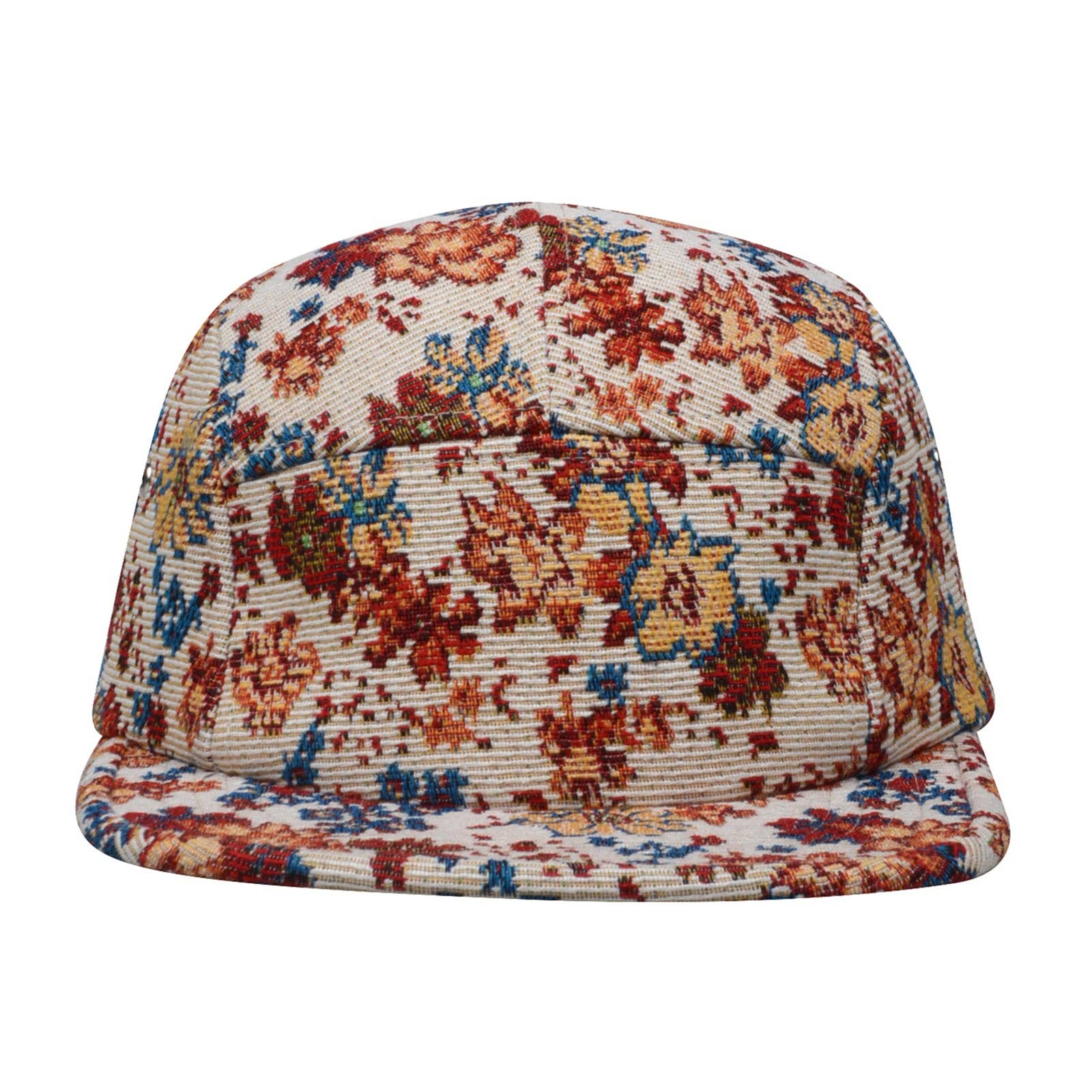 HatPhile Jacquard Floral 5-Panel Hat – Floral Pattern in Camp Cap Style: Floral Beige M