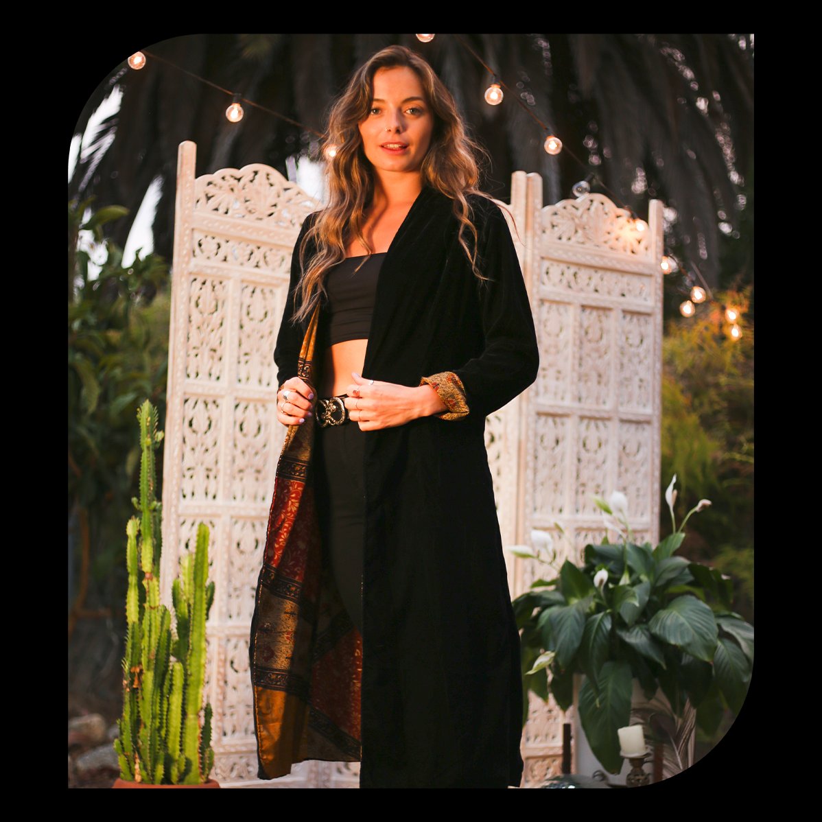 Choose your vibe. Luna Wild's Velvet Jackets are reversible and one-of-a-kind. Light up the room with its unique upcycled sari fabric or reverse it to start the night off sexy and soft. Either way you flip it, you'll be getting all the feels in these cozy and luxurious versatile pieces.